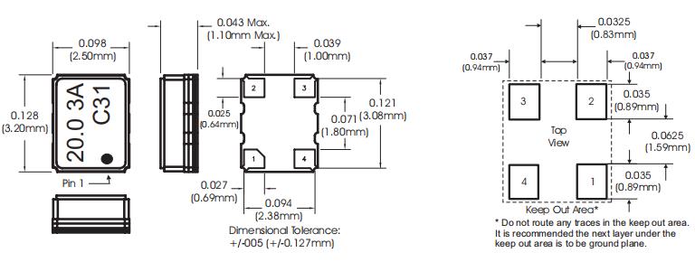 C31-020.0M|TCXO進口溫補晶振|6G基站晶振 尺寸圖