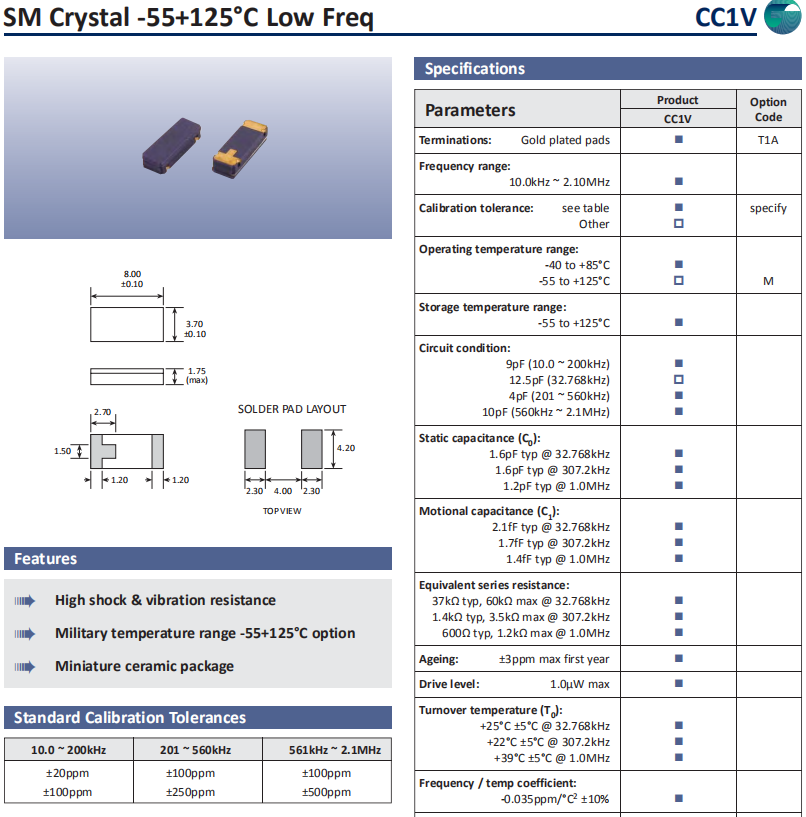 | Golledge晶振 | 單位 | CC1V晶振 | 石英晶振基本條件 |