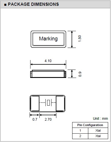 | 激勵功率 | DL | 1.0μW Max. | 推薦:100μW ~ 300μW |