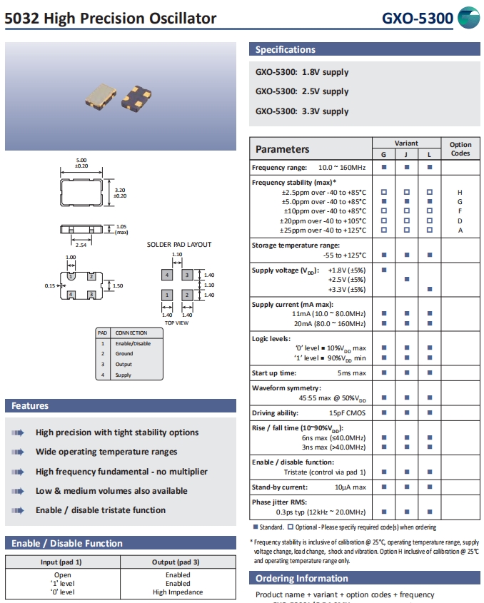 Golledge晶振,GXO-5300晶振,石英晶體振蕩子.5032mm體積的石英晶體振蕩器,有源晶振,該產(chǎn)品可驅(qū)動2.5V的溫補晶振,壓控晶振,VC-TCXO晶體振蕩器產(chǎn)品,電源電壓的低電耗型,編帶包裝方式,可對應自動高速貼片機自動焊盤,及IR回流焊盤(無鉛對應),為無鉛產(chǎn)品,小型,質(zhì)地輕.產(chǎn)品被廣泛應用到集成電路,程控交換系統(tǒng),無線發(fā)射基站.