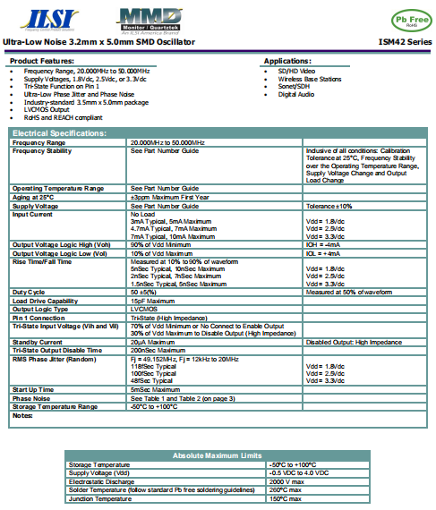ILSI晶振,ISM42晶振,耐高溫晶振.5032mm體積的石英晶體振蕩器,有源晶振,該產品可驅動2.5V的溫補晶振,壓控晶振,VC-TCXO晶體振蕩器產品,電源電壓的低電耗型,編帶包裝方式,可對應自動高速貼片機自動焊接,及IR回流焊接(無鉛對應),為無鉛產品,超小型,質地輕.產品被廣泛應用到集成電路,程控交換系統,無線發射基站.