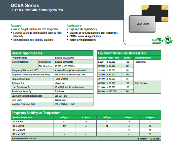 | Qantek晶振 | 單位 | QC5A晶振 | 石英晶振基本條件 |