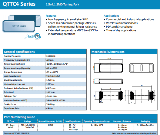 | Quarztechnik晶振 | 單位 | QTTC4晶振 | 石英晶振基本條件 |