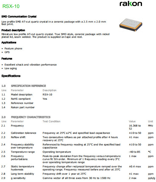 | Rakon晶振 | 單位 | RSX-10晶振 | 石英晶振基本條件 |