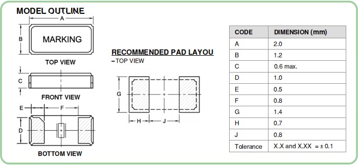 | 負(fù)載電容 | C | 6.0pF,9.0pF,12.5pF | 不同負(fù)載要求,請(qǐng)聯(lián)系我們. |