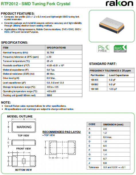 | Rakon晶振 | 單位 | RTF2012晶振 | 石英晶振基本條件 |