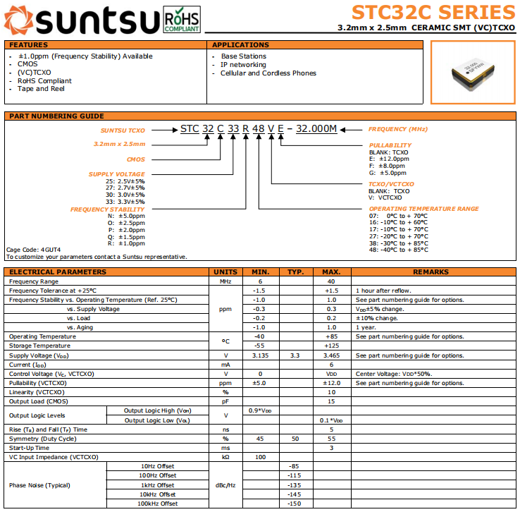 suntsu晶振,STC32C晶振,VC-TCXO振蕩器.3225mm體積非常小的SMDcrystal器件,是民用小型無線數碼產品的最佳選擇,小體積的晶振被廣泛應用到,手機藍牙,GPS定位系統(tǒng),無線通訊集,高精度和高頻率的穩(wěn)定性能,非常好的減少電磁干擾的影響,是民用無線數碼產品最好的選擇,符合RoHS/無鉛.