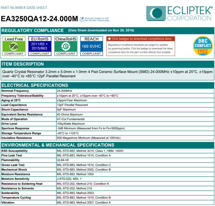 ECLIPTEK日蝕晶振,EA3250QA12-24.000M晶振,SMD石英晶振,ECLIPTEK晶振公司致力于保護環境,作為負責任的企業公民。ECLIPTEK晶振一直在努力解決電子行業的RoHS和無pb合規問題。我們的目標是逐步消除不兼容產品的使用,為我們的客戶提供符合要求的替代歐美晶振產品,以及發布的生命周期的結束,從而提供足夠的時間來批準兼容的產品。