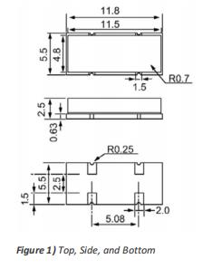 ECS-110.5-18-18-TR,SMD晶體諧振器,6G低成本晶振尺寸圖