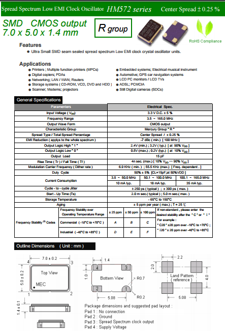 MERCURY晶振,臺產(chǎn)有源晶振,HM572R時鐘晶體振蕩器.貼片式石英晶體振蕩器,低電壓啟動功率,并且有多種電壓供選擇,比如有1.8V,2.5V,3.3V,3.8V,5V等,產(chǎn)品被廣泛應用于,平板筆記本,GPS系統(tǒng),光纖通道,千兆以太網(wǎng),串行ATA,串行連接SCSI,PCI-Express的SDH / SONET發(fā)射基站等領域.符合RoHS/無鉛.