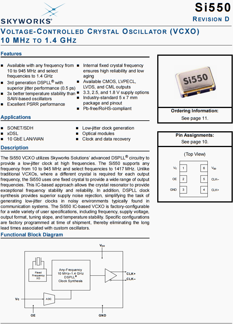 | 536BB155M520DGR | Skyworks晶振 | Si536 | XO | 155.52 MHz | LVDS | 3.3V | ±20ppm |