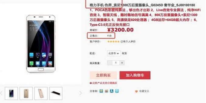 “色界”采用5.5英寸1080p屏幕,搭載驍龍820處理器,內(nèi)置4GB內(nèi)存+64GB機身存儲(UFS 2.0),配備前置800萬像素+索尼1300萬像素后置鏡頭,支持前置指紋識別,內(nèi)置3000mAh電池容量,支持快充3.0,支持Type-C正反插接口,支持Hi-Fi音效,支持雙卡雙待全網(wǎng)通,運行Android 6.0.1系統(tǒng)。 根據(jù)這些參數(shù)來看并沒有什么很大的特別之處,那么“色界”這款手機的銷售情況到底如何呢?