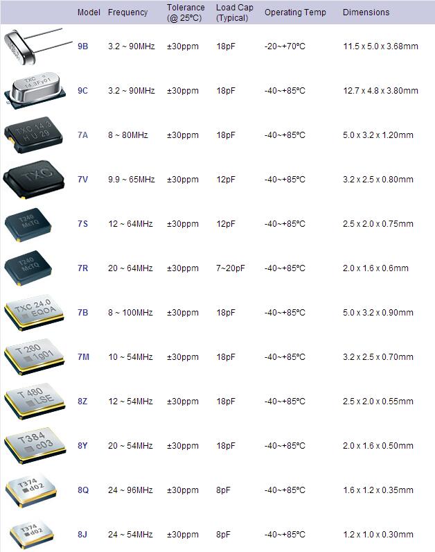 不管進口晶振還是國產晶振品牌,每個品牌產品系列都有相對應的料號,料號后面還有產品編碼。那很多時候晶振料號和編碼我們總是搞不清楚,到底怎么去區別,今天我們就來說說臺產晶振品牌,TXC晶振料號編碼如何分辨,現在我們先來看看:7A-16.000MAAE-B這顆無源晶振,這是一顆5032mm尺寸晶振,TXC晶振品牌的料號是7A,編碼是7A-16.000MAAE-那這個料號代表是什么呢?比如7A是TXC晶振料號,16.000M是代表頻率,A就代表額定頻率偏差是+-30ppm,當然也可能是B,如果是B的話就代表50ppm,C的話就代表100ppm,D的話就代表20ppm,按字母分辨,后面那個A就代表溫度精度的頻率偏差,30ppm,隨著溫度的變化,溫度的不一樣,參數也會跟著變化,比如K,那頻率穩定度就是+-60ppm,這個溫度參數就屬于汽車級晶振,工業級晶振產品了,后面在J的話就表示晶振負載電容,這個負載電容就是18pf,假如是K的話就代表TXC晶振的負載電容是20PF,按照字母以此類推,然后在最后面T或者B的話就代表包裝,編帶還是袋裝分類了。我解釋的這么清楚,小盆友們應該都對有源晶振了解了吧,如果還不了解就打TXC晶振技術部門電話0755-27838351資訊吧。