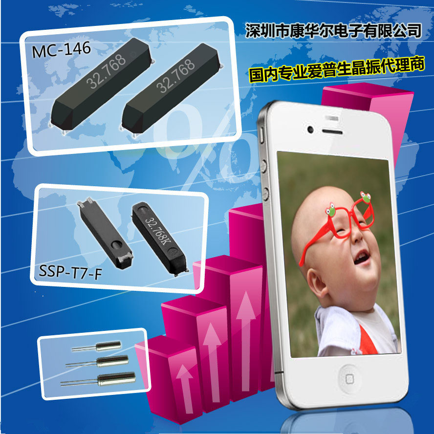 當然手機里還有用到一款進口晶振,稱為精工晶振,是日本生產的,它的型號是SSP-T7-F頻率也是32,768KHZ的,因為精工所生產的都是32.768KHZ的晶振,到目前為止依然有很多客戶在用,畢竟是進口的各方面性能都要高一些。