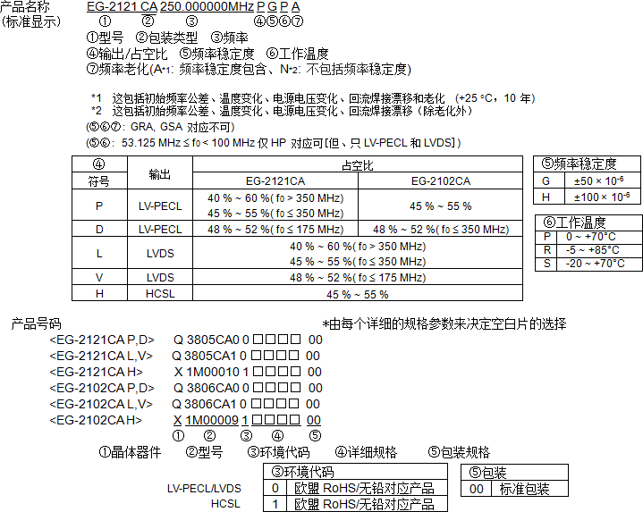 EG-2121CA愛普生差分#貼片晶振#7050mm, LV-PECL-LVDS-HCSL 低電平,低功耗,低電流電壓可達到, 電壓2.5V-3.3V