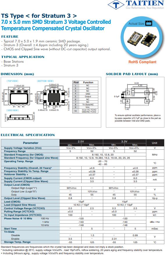 | TSEATCSANF-20.000000 | Taitien | TS | VCTCXO | 20MHz | 2.8 V ~ 3.3 V |