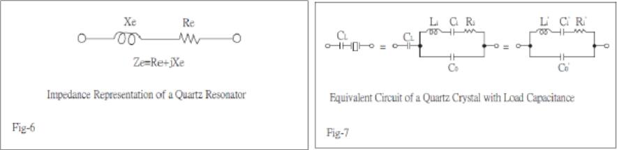 在這種振蕩電路中,石英諧振器作為感抗Xe和電阻Re的串聯(lián)電路工作,如圖6所示,其振蕩頻率由下式表示: