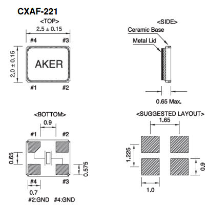 AKER晶振,AKER貼片晶振,CXAF-221諧振器.貼片石英晶體,體積小,焊接可采用自動貼片系統(tǒng),產(chǎn)品本身小型,表面貼片晶振,特別適用于有小型化要求的電子數(shù)碼產(chǎn)品市場領(lǐng)域,因產(chǎn)品小型,薄型優(yōu)勢,耐環(huán)境特性,包括耐高溫,耐沖擊性等,在移動通信領(lǐng)域得到了廣泛的應(yīng)用,晶振產(chǎn)品本身可發(fā)揮優(yōu)良的電氣特性,滿足無鉛焊接的高溫回流溫度曲線要求.