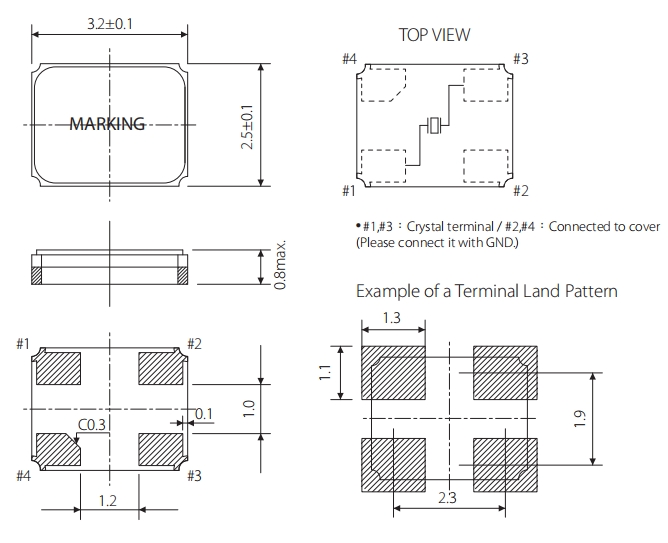 臺灣SIWARD晶振,XTL571150-M118-070,6G無線局域網晶振尺寸圖