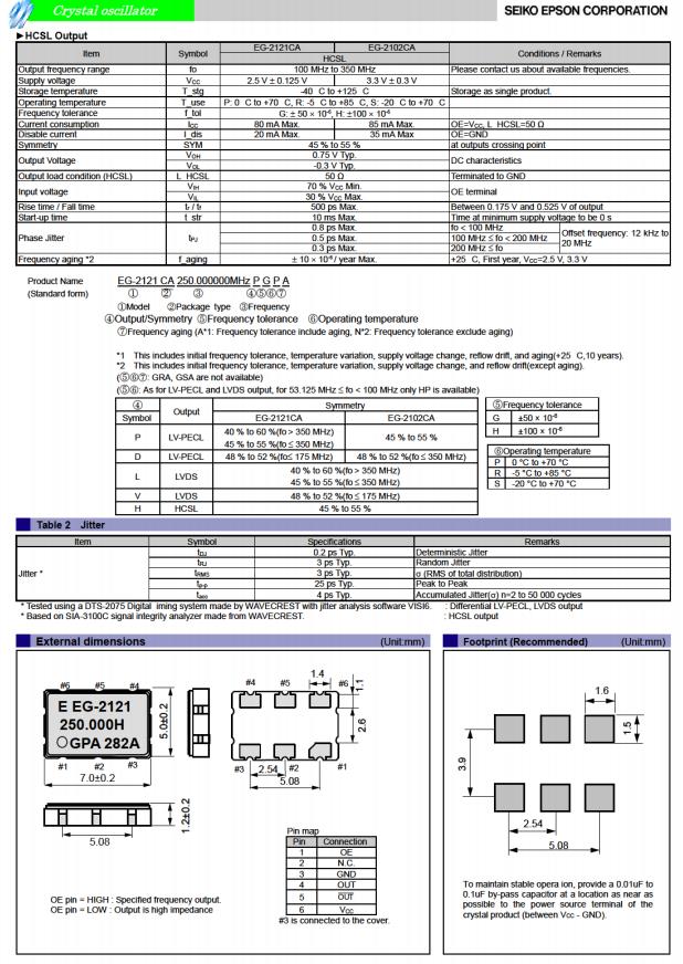 | Q3805CA10017000 | EG-2121CA | 250.000000 MHz | 7.00 x 5.00 x 1.20 mm | LVDS | 2.375 to 2.625 V | 0 to 70 °C |