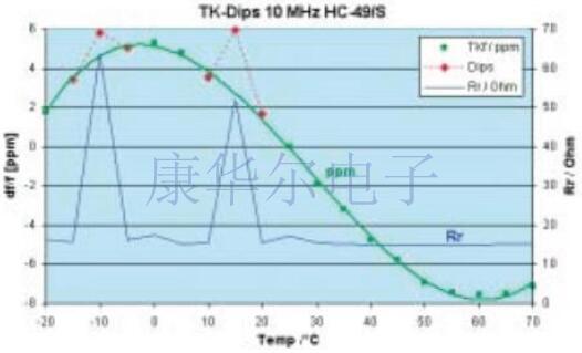 ●檢查活動驟降:在室溫下完美工作的石英晶體在溫度范圍內(nèi)可以顯示出更高的諧振阻抗和更強(qiáng)的頻率跳躍.其原因是主共振與其他形式的振動的干擾共振的耦合,通常僅在狹窄的溫度范圍內(nèi)發(fā)生,并導(dǎo)致所謂的活性下降.具有條紋石英的小型化石英晶體特別容易受到這種傾角的影響,即窄矩形石英盤,尤其是較低的頻率.