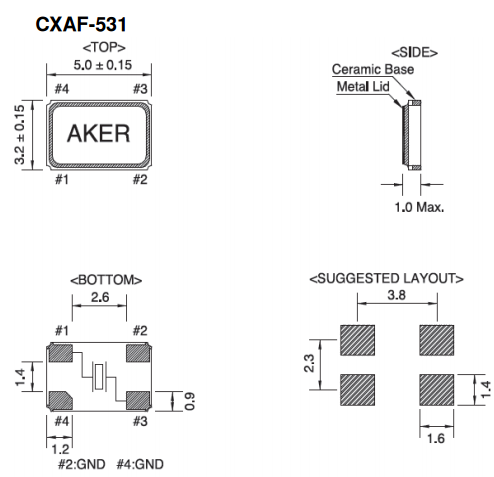 AKER晶振,貼片石英晶體,CXAF-531臺灣晶振,安碁科技成立于西元1990年,主要從事貼片石英晶振產品的研發、制造及銷售.擁有深厚的研發技術底蘊,為晶體振蕩器之專業制造公司.深耕臺灣、布局全球.在美國與中國大陸均設有據點,提供客戶最及時的服務,朝客戶導向目標邁進.科技不斷的進步,安碁科技亦不斷提升技術服務.透過與客戶緊密的互動,了解客戶需求,提供客戶全方位的技術支援─TotalSolution;貫徹安碁誠信為首、專業化客戶服務及品質優先的理念.